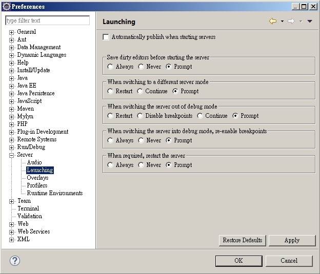 我們是在外面修改的,Eclipse不會同步文件,所以Eclipse會建立一個新的server.xml來覆蓋原來的文件。